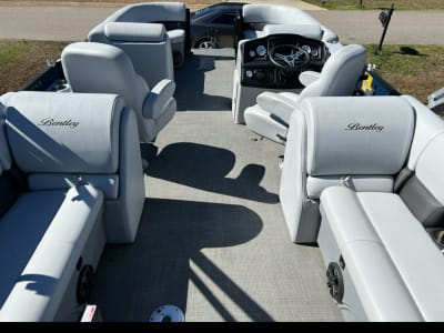 Climb aboard the Bentley 22 Foot Premium Pontoon for a luxurious adventure! With spacious seating for up to 15 people and a robust 140 HP engine, this pontoon is perfect for family gatherings and outings with friends. Enjoy the perfect day of sunbathing, picnicking, or cruising on Lake Jordan. Safety is our priority, ensuring a stress-free and memorable day on the water.